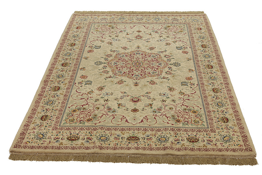 Dywany Isfahan: W centrum Iranu, pomiędzy górami Zagros a pustynią, leży miasto Isfahan. Obecnie jest ono ważnym miastem przemysłowym o populacji 1,2 miliona mieszkańców. Pod względem architektonicznym miasto jest prawdziwym arcydziełem. Duży plac Imama Homeiniego z dwoma meczetami (Lutf Allah i Ali Kapu), z pałacami, parkami i starymi mostami, otoczone są sklepami sprzedającymi figurki, dywany, biżuterię, a także domami herbaty (tea hane). Wszystko to razem wzięte tworzy niesamowitą atmosferę, prawdziwie orientalną. Wielki Bazar biegnie od północnej części placu aż do meczetu Piątkowego, osiągając długość 5 km. Jedno stare perskie powiedzenie z XIV wieku mówi, że Isfahan jest połową świata. Miasto to, podczas panowania dynastii Safawidów (1502 – 1629), było stolicą Iranu, gdzie szach Abbas zgromadził najlepszych rzemieślników wykonujących dywany. W okresie tym zostały utkane najbardziej luksusowe dywany, które w czasach obecnych można oglądać w niektórych pałacach, muzeach, czy w prywatnych zbiorach znanych kolekcjonerów sztuki. Starsze dywany Isfahan, w przeciwieństwie do późniejszych, nie posiadały centralnego medalionu. Cała powierzchnia dywanu była pokryta spiralnymi, ozdobnymi kwiatami oraz palmetami kwiatowymi. Nowoczesne dywany Isfahan nie mogą się do nich porównywać, gdyż niegdyś powstawały one wyłącznie dla wyższej klasy. Kontynuując jednak tradycję, nawet nowoczesne dywany Isfahan są drobno utkane, natomiast włosie jest przycinane bardzo krótko, w celu podkreślenia ich wzorów. Do ich wyrobu używa się również jedwabiu, aby podkreślić niektóre części wzoru, szczególnie przy wykonywaniu kwiatów. Osnowę wykonuje się z jedwabiu lub z bawełny.