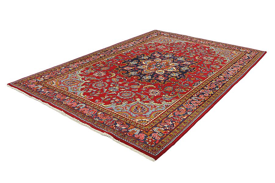 Dywany Tebriz (Tabriz): Miasto Tebriz jest stolicą prowincji Azerbejdżanu Wschodniego, leżacej w południowo-zachodnim Iranie. Do końca epoki karawan było ono najważniejszym ośrodkiem handlu i wyrobu dywanów. Tutaj też kupcy z Zachodu dokonywali zakupów prawdziwych arcydzieł, tkanych przez renomowanych i bardzo zdolnych tkaczy. Ich wysoka jakość sprawiła, iż stały się one sławne na rynku ogólnoświatowym. Powstało wiele pracowni ręcznie robionych dywanów, gdzie tkano dywany przedstawiające stare i nowe wzory, o dużym zagęszczeniu pęczków i najlepszej jakości. Jedwab oraz cienka wełna sprawiły, że dywany zalicza się do bardzo wysokiej klasy. Żadne z innych perskich miast nie produkowało aż tak dużej ilości i różnorodności dywanów. Z medalionem lub bez, ich wzory są pełne fantazji i niepowtarzalności. Niektóre dywany zdobią również kwiaty, przedstawienia oraz teksty wierszy. Dominującymi kolorami są: beżowy, niebieski oraz czerwony.