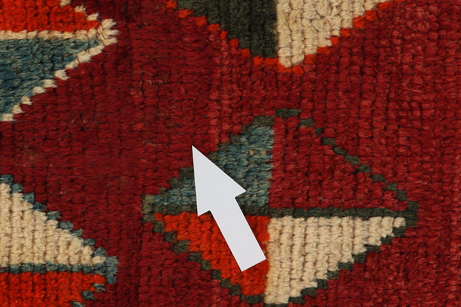 Abrasz: Ze względu na odmienny stopień natłuszczenia włosia oraz różnej zawartości soli podczas procesu barwienia, wełna wykazuje nierównomierną chłonność ilości barwnika. Przed rozpoczęciem tkania nie jest to aż tak widoczne. Natomiast podczas samego tkania powstają rzędy o odmiennych odcieniach tego samego koloru. Efekt ten zwany jest Abrasz – co w języku perskim znaczy „chmurka” - demonstruje ono naturalność i autentyczność włosia, do którego wyrobu nie zostały użyte żadne środki chemiczne. Przykłady
