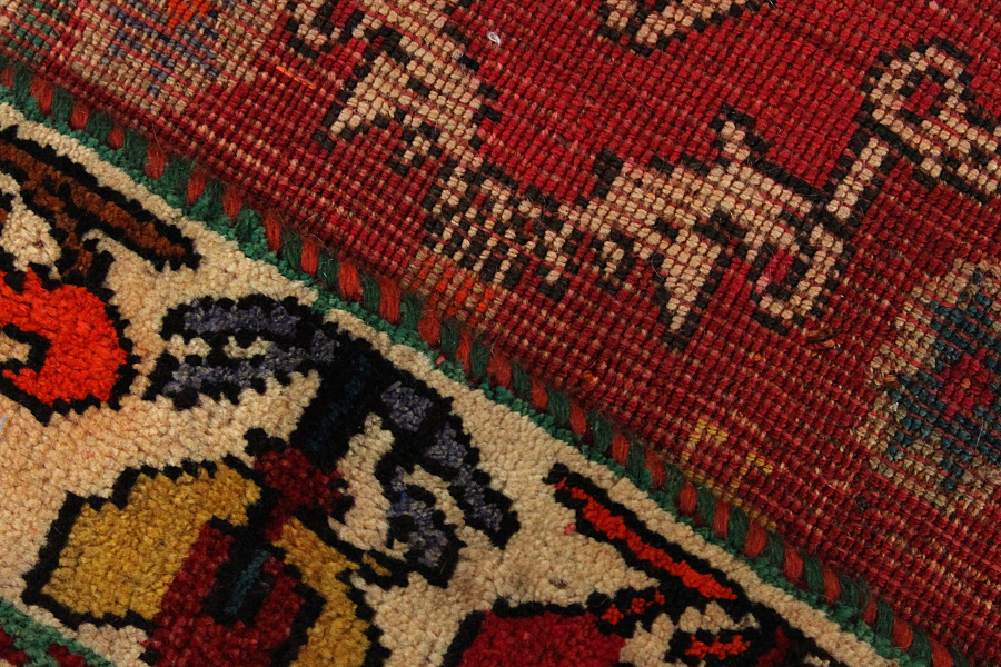 Abrasz: Ze względu na odmienny stopień natłuszczenia włosia oraz różnej zawartości soli podczas procesu barwienia, wełna wykazuje nierównomierną chłonność ilości barwnika. Przed rozpoczęciem tkania nie jest to aż tak widoczne. Natomiast podczas samego tkania powstają rzędy o odmiennych odcieniach tego samego koloru. Efekt ten zwany jest Abrasz – co w języku perskim znaczy „chmurka” - demonstruje ono naturalność i autentyczność włosia, do którego wyrobu nie zostały użyte żadne środki chemiczne. Przykłady